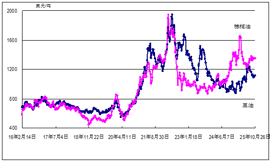 2. 豆油價格環比基本持平。美國芝加哥商品交易所豆油最近期貨合約收盤周均價每噸1116美元,環比基本持平,同比高16%。