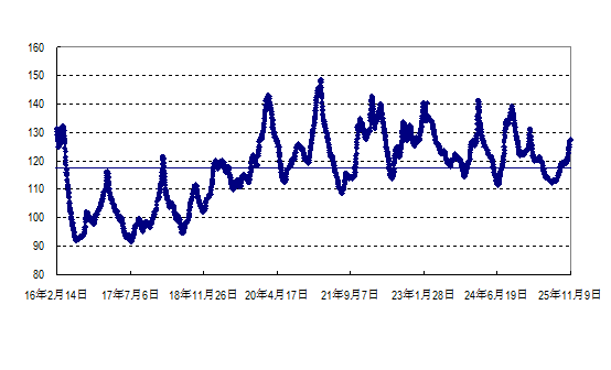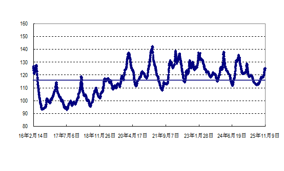 據(jù)農(nóng)業(yè)農(nóng)村部監(jiān)測(cè),2025年第45周(2025年11月3日—9日,下同)“農(nóng)產(chǎn)品批發(fā)價(jià)格200指數(shù)”為125.09(以2015年為100),比前一周升0.64個(gè)點(diǎn),同比高0.63個(gè)點(diǎn);“‘菜籃子’產(chǎn)品批發(fā)價(jià)格指數(shù)”為127.09(以2015年為100),比前一周升0.74個(gè)點(diǎn),同比高0.94個(gè)點(diǎn)。
