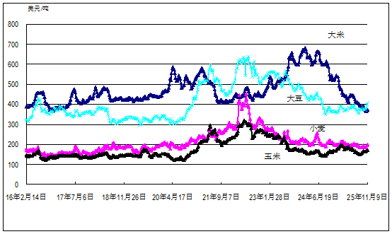 國(guó)際大宗農(nóng)產(chǎn)品周均價(jià)格走勢(shì)圖(2016年2月至今)